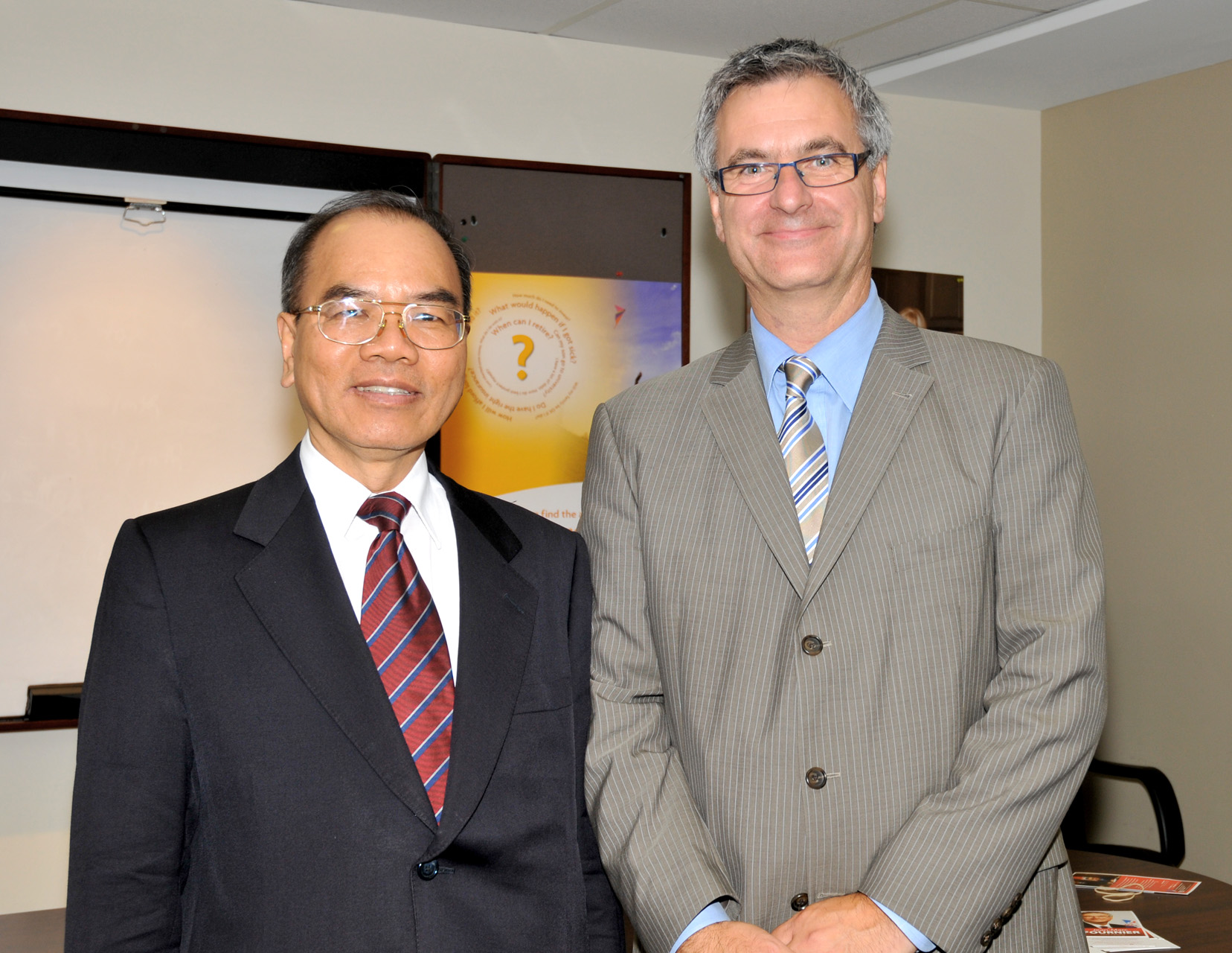 Bộ trưởng Jean-Marc Fournier và các cộng tác viên gốc Việt: Jean-Francois Tran (trái), Marie Madeleine Cao (giữa), giám dốc điều hành của Cộng đông Người Việt Quốc gia vùng Montréal, thành viên comìté de VIGIE