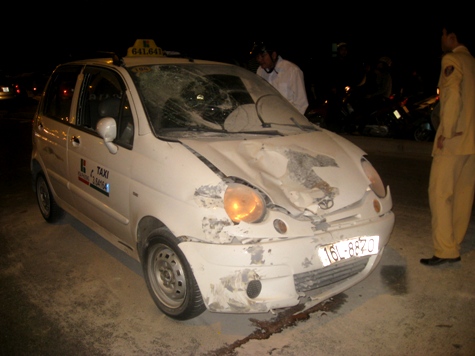 Sau khi bị nổ lốp, chiếc xe theo đà lao thẳng vào một chiếc xe máy tay ga mang BKS 30L5-0745 rồi mới dừng lại. Nhiều người dân cho biết thêm, khi xảy ra tai nạn, chiếc xe tay ga nói trên chở ba người, trong đó có một cháu bé. Khi tai nạn xảy ra, cháu bé bị hất văng lên nắp capo chiếc taxi. Ngay sau đó, nạn nhân đã được người dân đưa đi cấp cứu tại cơ quan y tế.