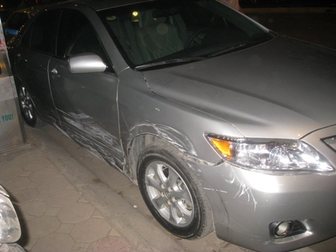 | Chiếc xe ô tô bị taxi BKS 16L 8870 đâm vào sườn xe (Ảnh: N.P) |