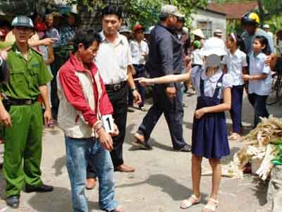 Một bé gái (bên phải) chỉ nơi tên Minh sàm sỡ mình Sau những buổi đi làm, y dùng xe máy dạo lòng vòng quanh các tuyến đường ở phường An Hòa để hóng mát. Rồi từ đó nổi máu dê, tìm cách dụ dỗ các bé gái chỉ bằng tuổi con, cháu của mình, để rồi hành vi đó của y đã đẩy y vào vòng lao lý. Nhìn ánh mắt và lời xầm xì của mọi người, mặt y lại đỏ lựng... ...đến những vở kịch Vào một buổi tối khuya, Minh điều khiển xe máy BKS 75K1-5154 đi lòng vòng đến những nơi hoang vắng, ít người qua lại trên đường Nguyễn Văn Linh, Đặng Tất (thuộc phường An Hòa và khu quy hoạch phường Hương Sơ, TP. Huế). Tại đây, Minh bắt gặp cháu L.M.T. (11 tuổi, trú phường An Hòa) một mình đi chơi về.