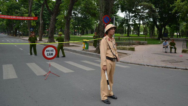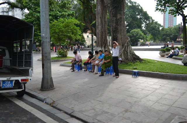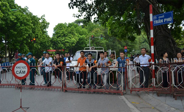 Lúc 10h00: Khu vực chung quanh Đại sứ quán TQ bị chốt chặn bởi hàng rào sắt và lực lượng công an đông đảo, đoàn biểu tình đang tuần hành về phía Bờ Hồ.