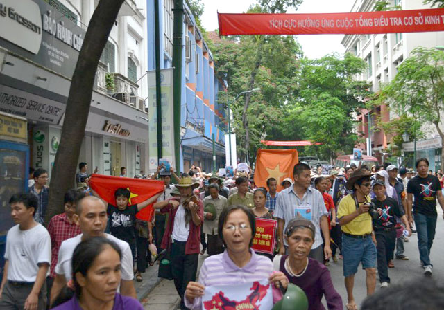 Điểm mới trong cuộc xuống đường hôm nay tại Hà Nội là có sự tham gia của nhiều bà con nông dân đến từ các nơi có tình trạng truất hữu đất đai như Văn Giang (Hưng Yên), hay Vụ Bản (Nam Định). Theo một số trang blog tại Việt Nam, từ 300 người lúc ban đầu trước Nhà Hát Lớn, trong quá trình tuần hành qua các phố Tràng Tiền, Tràng Thi, Hồ Gươm… đến điểm kết thúc là tượng đài Lý Thái Tổ, đoàn biểu tình đã càng lúc càng đông thêm để lên đến khoảng 1000 người.