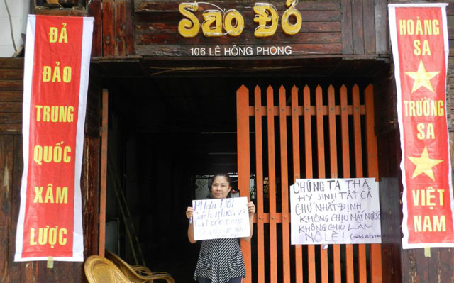 Lúc 09h10: Đoàn biểu tình lên tới hàng trăm người đang tuần hành, vừa đi vừa giơ cao những biểu ngữ có nội dung phản đối Trung Quốc xâm lược, kêu gọi lòng yêu nước...