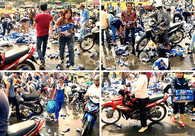 Một điển hình đáng xấu hổ thể hiện trong vụ cướp bia khi xe bị tai nạn. Lúc 13h ngày 4-12-2013, chiếc xe chở 1,500 thùng bia bị nạn ở Biên Hòa. Xe lật. Bia tràn ra dưới đất. Hàng trăm người hồ hởi xung phong vào cướp bia. Có người còn mang xe ba gác đến chở bia.
